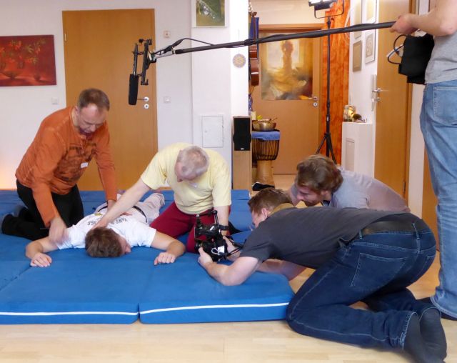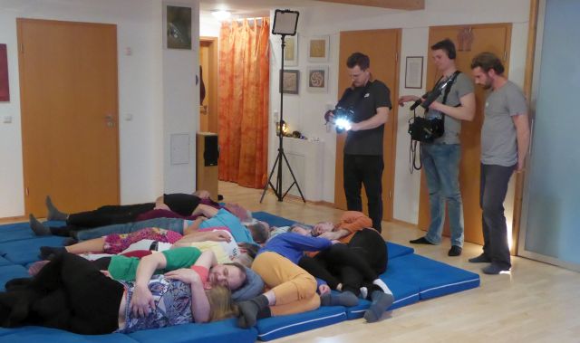 Einführungsrunde im gemütlichen Wohnzimmer Das Fernsehteam im Einsatz: